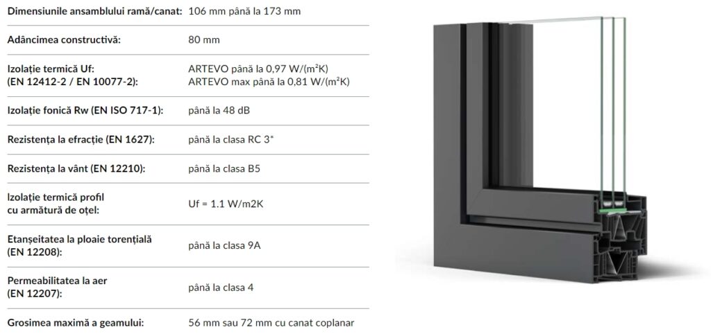 Datorită designului său, ARTEVO se mândrește cu valori superioare impresionante, care sunt îmbunătățite și mai mult prin utilizarea opțională a noii tehnologii inovatoare de profil REHAU LowE.